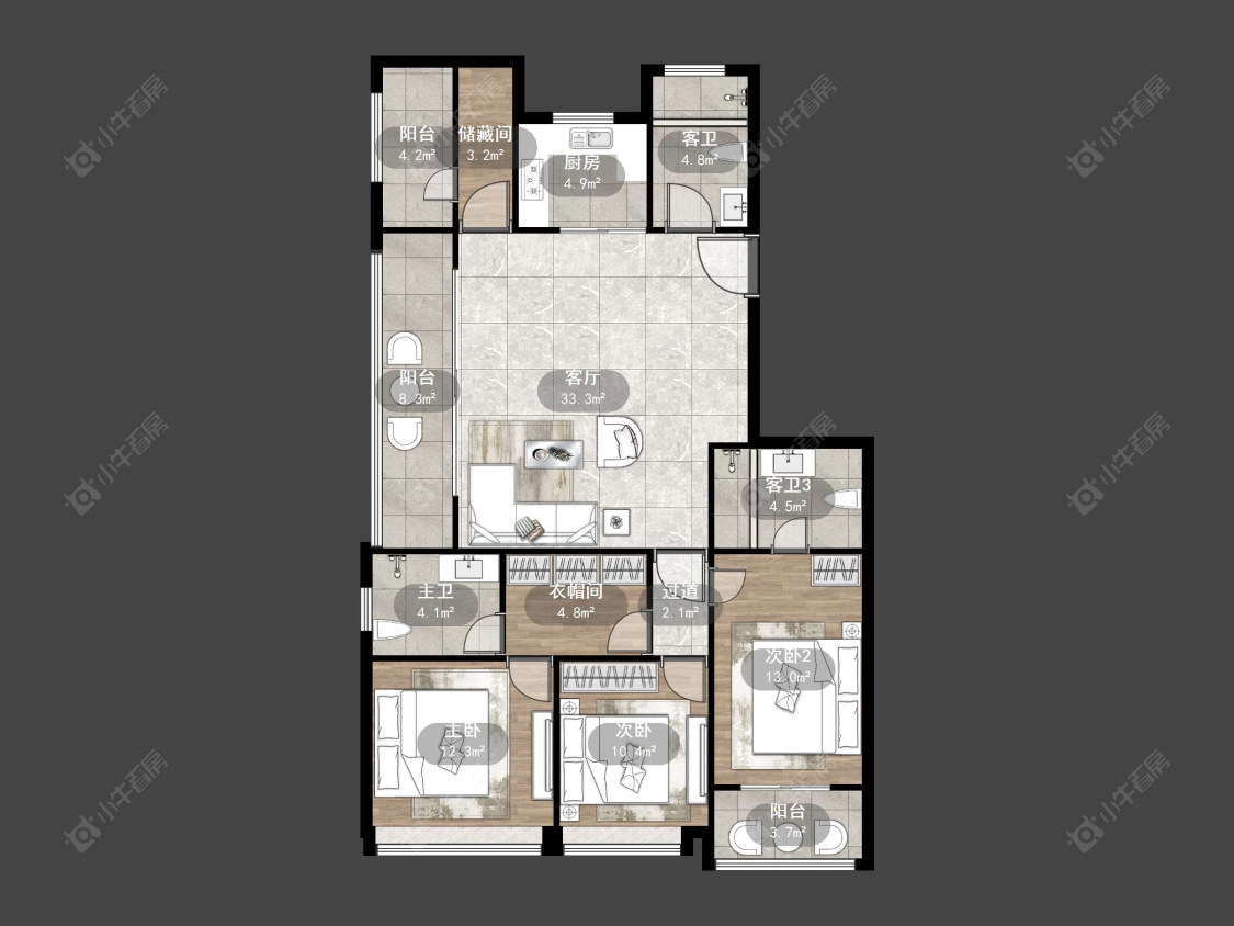 3室2厅2卫 | 99㎡ | 南