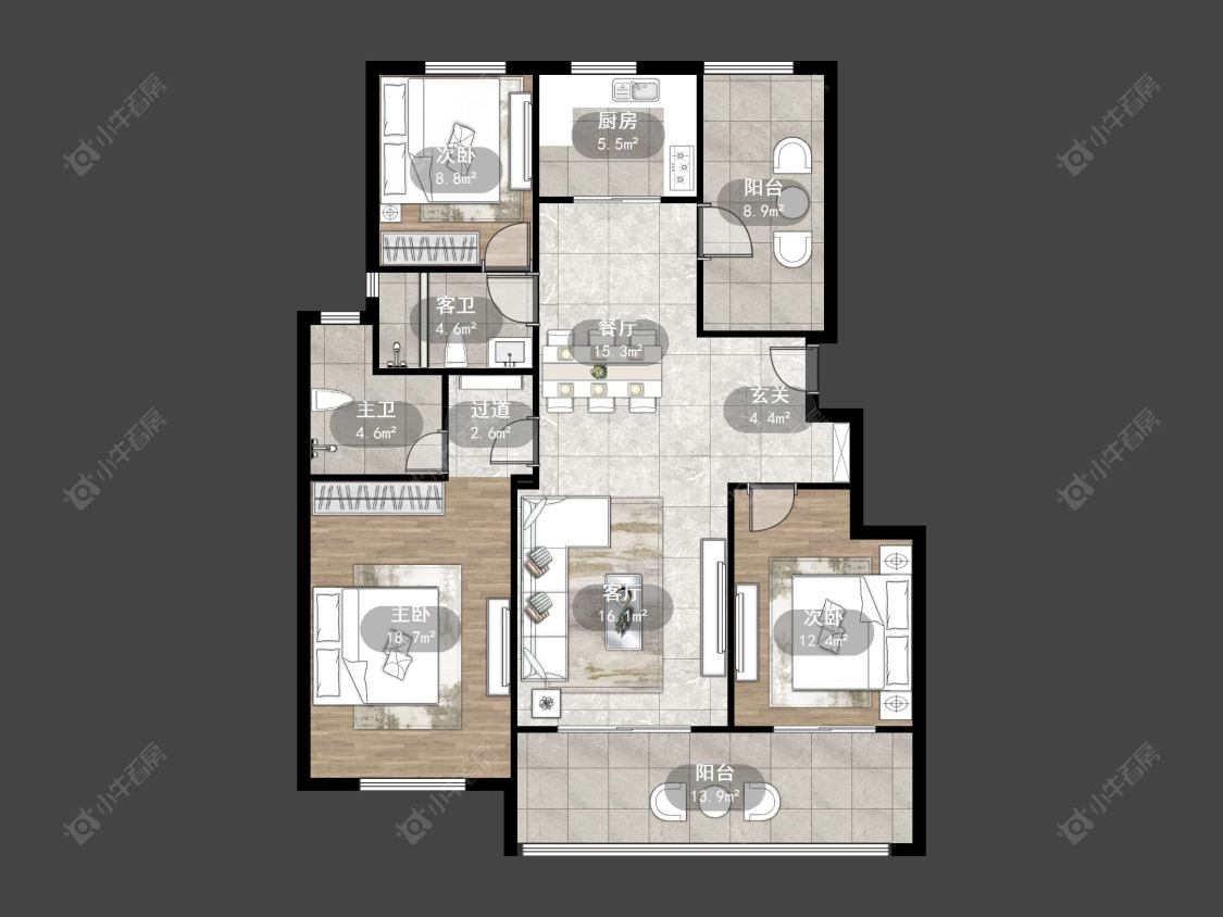 4室2厅2卫 | 130.94㎡ | 南