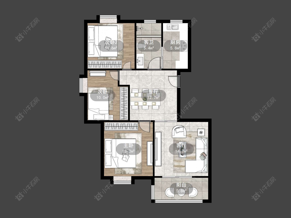 3室2厅1卫 | 115.88㎡ | 南
