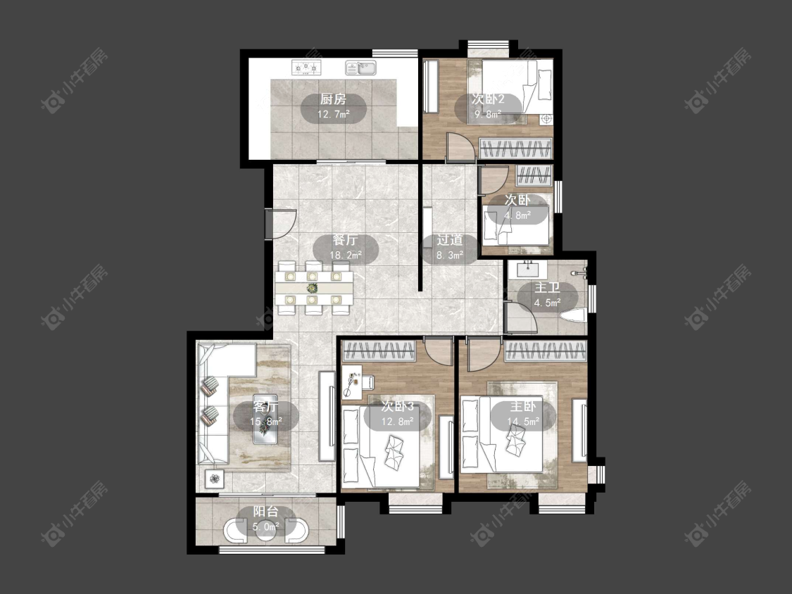 3室2厅1卫 | 143㎡ | 南