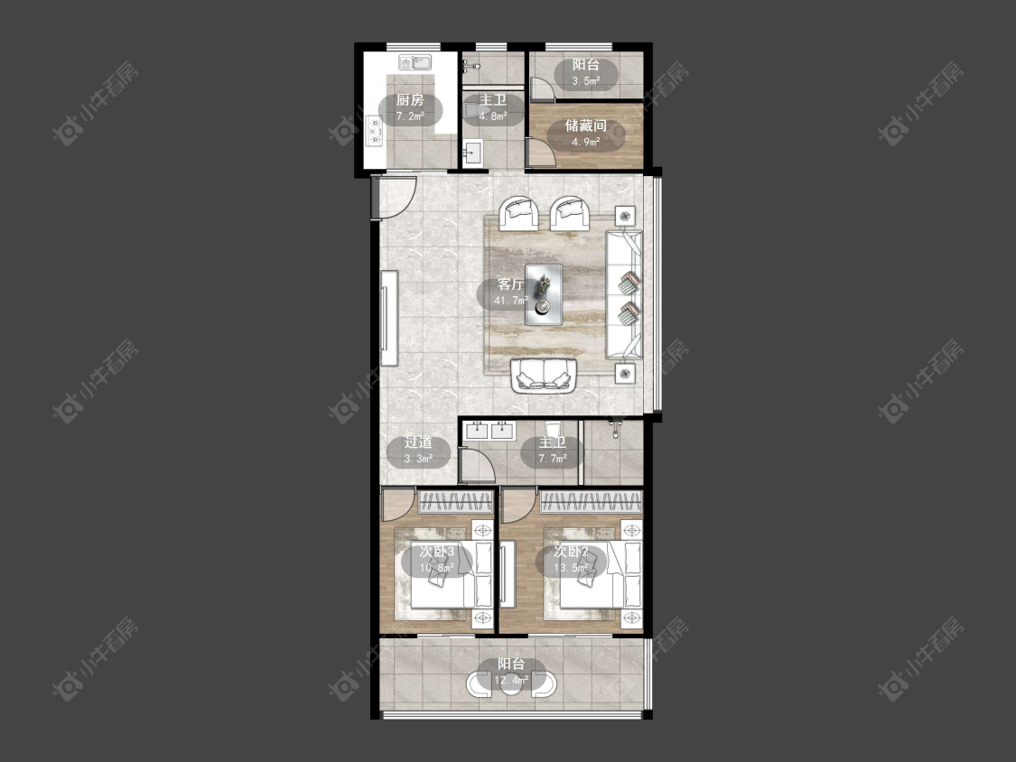 3室2厅2卫 | 125㎡ | 南